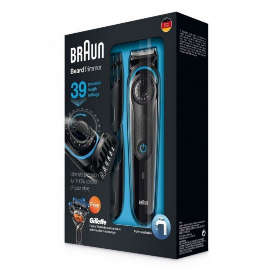 ماشین اصلاح براون مدل BT3222 به طور اختصاصی با طراحی ارگونومیک دستگیره و ضدلغزش برای اصلاح موی صورت ساخته شده است. همچنین سری اصلی ماشین اصلاح براون مدل BT3222 فرایند اصلاح خطوط و لبه های دقیق روی گردن و گونه شما را به طور دقیق انجام میدهد. طراحی ارگونومیک و بدنه پلاستیکی این ریش تراش از سر خوردگی آن در حین انجام فرایند اصلاح جلوگیری میکند. ماشین اصلاح براون مدل BT3222 دارای یک شانه بسیار حرفه ای قابل تنظیم با یک نشانگر عقربه ای میباشد که شما به سرعت میتوانید سایز ریشی که میخواهید در هر نقطه از صورت رشد کرده را تنظیم و اصلاح نمایید. ماشین اصلاح براون مدل BT3222 دارای دو عدد شانه میباشد که شانه کوچک تر از 1 تا 20 میلیمتر و شانه بزرگتر از 20 تا 39 میلیمتر قابل تنظیم است.شرکت براون این دستگاه را کاملا قابل شستشو ساخته و شما میتوانید به راحتی آن را با آب بشویید اما میبایست توجه کرد که این دستگاه در زیر دوش حمام کار نخواهد کرد. برای رسیدن به هر سبک و هر گونه استایل که آقایان میخواهند از تیغه های بسیار تیز از تیتانیوم با عمر طولانی استفاده شده است. باتری این دستگاه کارایی قابل توجهی داشته و در ازای 8 ساعت شارژ کامل به شما یک ساعت زمان استفاده خواهد داد. درون جعبه ماشین اصلاح براون مدل BT3222 یک عدد تیغ ژیلت پروگلاید به همراه یک سری موجود میباشد که شما میتوانید از آن برای نقاطی که قصد تریمر دقیق دارید بهره ببرید.