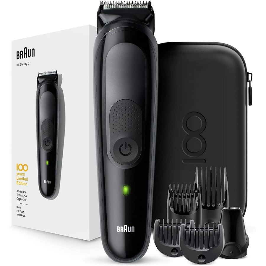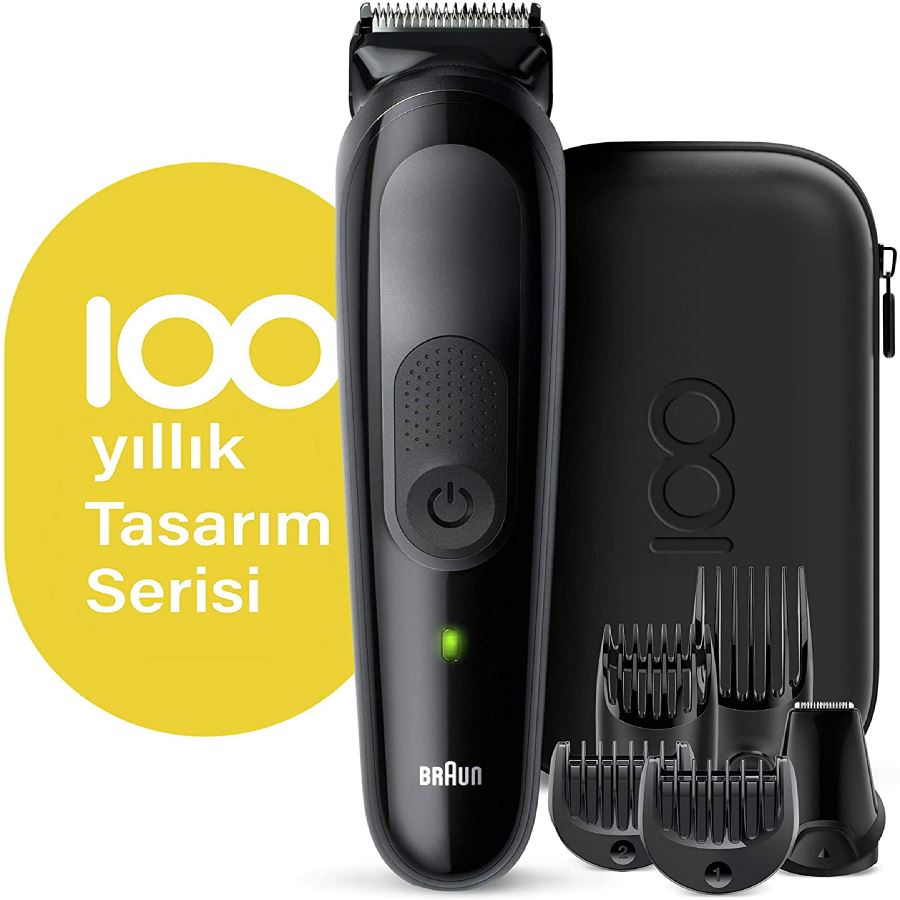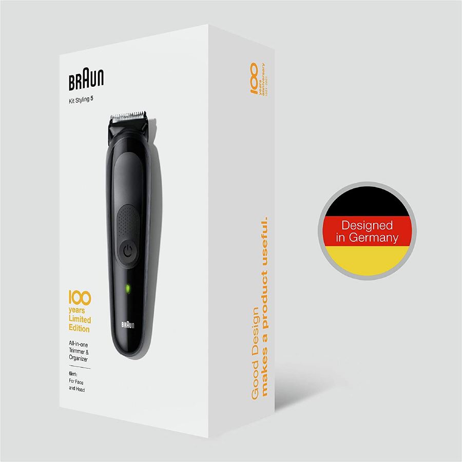 این دستگاه بصورت ارگونومیک طراحی شده است و به راحتی در دست جا می گیرد و شما بدون این که مچ دستتون خسته بشود می توانید از آن استفاده کنید. بر روی بدنه ی این ماشین اصلاح خط زن تعبیه شده است که به شما کمک می کند تا خط ریش و سبیل و پشت گردن را باهاش مرتب کنید. ست ماشین اصلاح براون سری 5 مدل MGK5 بصورت Limited Edition بوده و برای 100 ساله شدن کمپانی براون طراحی اختصاصی شده است. پک کامل این محصول از 5 سری تشکیل شده است که اصطلاحا به آن 6in1 گفته میشود. این سری ها شامل 4 شانه برای موی صورت و سر، یک سری برای اصلاح دقیق و در نهایت یک کیف بسیار با کیفیت برای نگهداری این محصول می باشد. تکنولوژی AutoSense که در سری های بالای براون استفاده میشود در این محصول وجود دارد و اصلاح موی صورت و سر با دقت و با کنترل دقیق موتور انجام می پذیرد. ست ماشین اصلاح براون سری 5 مدل MGK5 کاملا ضد آب بوده و براحتی نظافت آن صورت می پذیرد. 100 دقیقه استفاده با یک بار شارژ و شارژ سریع 5 دقیقه ای ، تیغه های تیز مادام العمر، گریپ عالی ،…. از مشخصات این محصول می باشد.