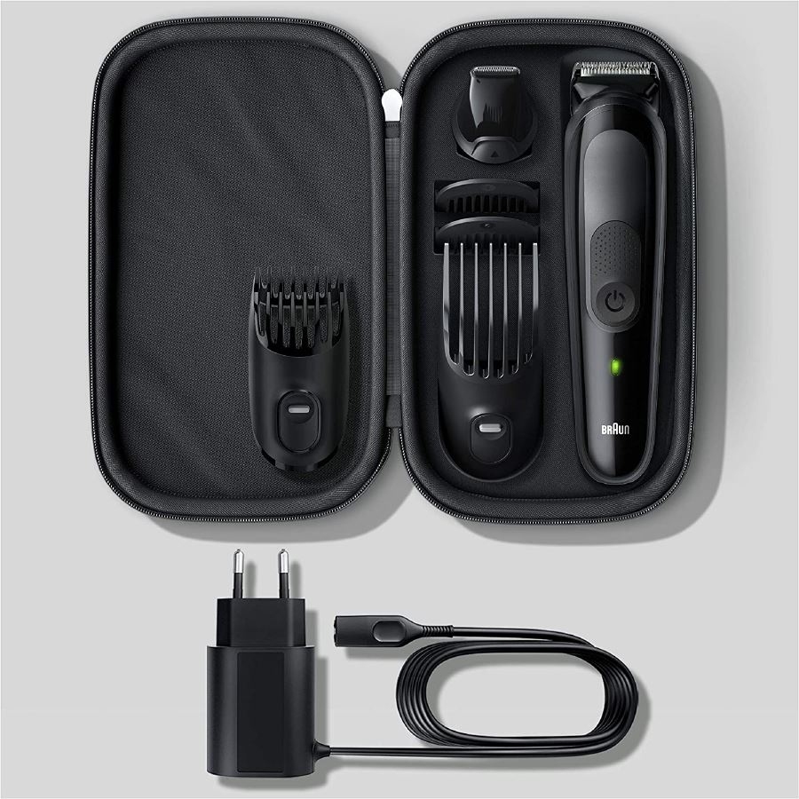 جنس تیغه های ست ماشین اصلاح براون سری 5 مدل MGK5 از استیل ضد زنگ ساخته شده که همین جنس فوق العاده این ماشین اصلاح این امکان رو فراهم میکنه تا در مقابل هوا و رطوبت از مقاومت خیلی بالایی برخوردار باشه. تکنولوژی برش این ماشین اصلاح بصورت مستقیم می باشد و به سادگی و با مرزبندی مشخصی موهای شما را کوتاه می کند. ست ماشین اصلاح براون سری 5 مدل MGK5 موهای صورت شما را بصورت کامل کامل صفر می کند و پوستی صاف و بدون عیب را برای شما به ارمغان می آورد. این ماشین اصلاح کاملا ضد آب می باشد و شما می توانید از آن بصورت خشک و مرطوب استفاده کنید همچنین این دستگاه را می توان با کف ریش و ژل در زیر دوش و حمام استفاده کرد.